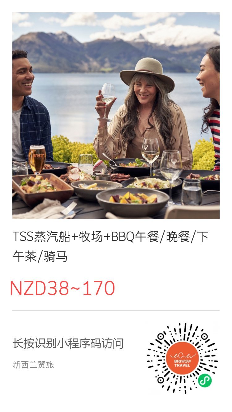 皇后镇蒸汽船+牧场+BBQ午餐/晚餐/骑马